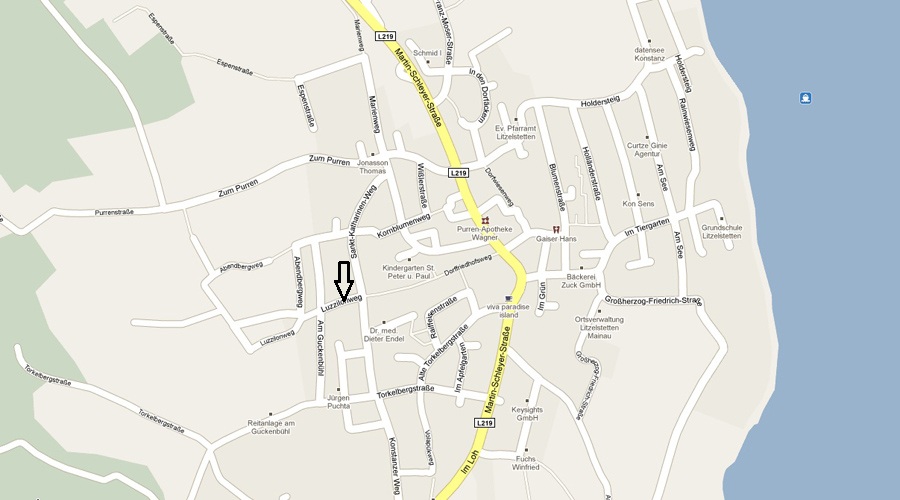 Wenn man – von Dingelsdorf aus – nach Litzelstetten kommt, biegt man kurz nach Ortsbeginn rechts in die erste Querstraße „Zum Purren“ ab. Die zweite Querstrasse links ist dann der „Kornblumenweg“. In diesen biegt man ein und fährt dann gleich nach 10 m wieder rechts ab in den „St. Katharinenweg“. Die zweite Querstrasse rechts ist der „Luzzilonweg“.
